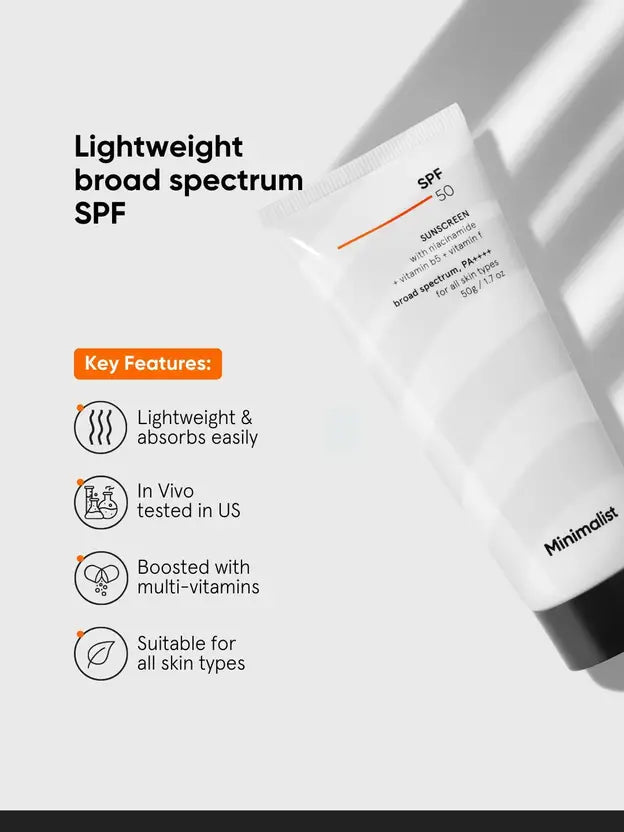 Minimalist Sunscreen - SPF 50 PA++++ Lightweight Niacinamide Broad Spectrum SunCream |No White Cast |Men&Women (50 g)
